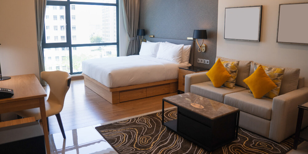 Die moderne Raumausstattung der Zimmer soll einem Designhotel entsprechen, die Raumtechnik wird jedoch einer Pflegeeinrichtung gleichen und soll über eine behindertengerechte Ausstattung, bodengleiche Duschen und eine Schwesternrufanlage verfügen.