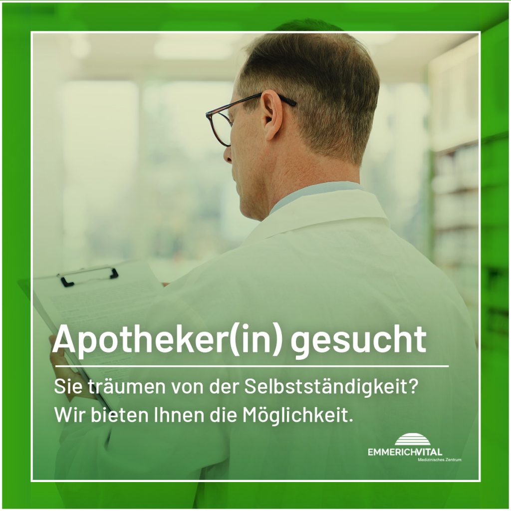 Das medizinische Zentrum Emmerich Vital ist noch auf der Suche nach einem Apotheker/ einer Apothekerin und bietet Ihnen eine attraktive Erdgeschoss Fläche zum verwirklichen.